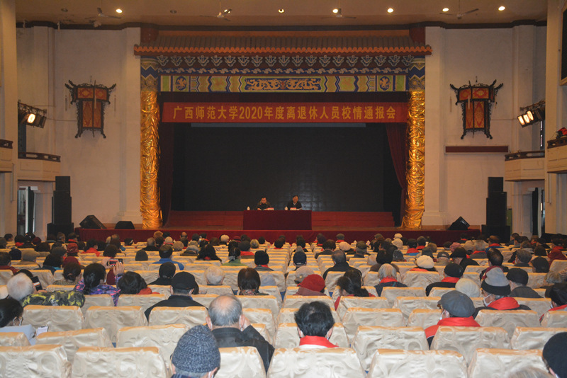 为了让我校广大离退休教职工及时了解学校的改革发展建设情况,12月28上午,我校在王城校区国学堂召开2020年离退休人员校情通报会。会议由贺祖斌校长作情况通报,校党委副书记旷永青主持,党办/督查办、校办、校工会、教师工作部/人事处、财务处、基建处、资产处、武装部/保卫处、校医院等部门负责人、离退处全体干部以及近800名离退休教职工参加了此次校情通报会。