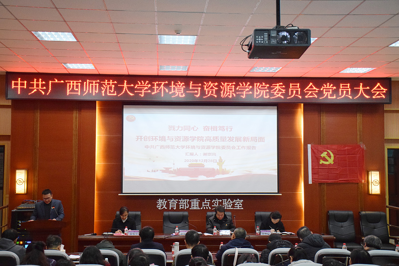 12月28日上午,环境与资源学院党委在雁山校区伯康楼一楼报告厅召开党员大会进行党委、纪委换届工作,校党委组织部负责人到会指导,全院师生党员出席了本次会议。大会由学院党委负责人主持。