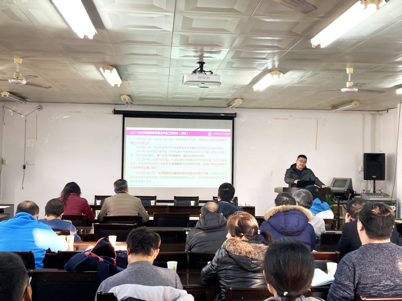 随后,科技处负责人进行了总结发言,他首先感谢数学与统计学院对我校科研工作的支持,然后指出“十三五”期间数学与统计学院按照学校的要求不断加大人才引进力度,引进了大量高层次青年人才,青年人才是冲击国家基金立项的主力军,要抓住科研工作的黄金时期积极申报国家自然科学基金青年科学基金项目;学院要在国家自然科学基金申报动员工作中积极引导老师与其他学科教师联合策划、申报重点重大基金项目,促进学科交叉融合,提高国家基金项目申报资助率,积极鼓励老师们填报国家自然科学基金区域创新发展联合基金(广西)申报指南建议,加强数学学科与其他学科深度交叉融合,为获取更高层次的国家项目积累成果和经验。