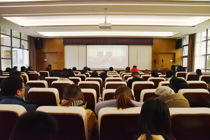 12月30日上午,自治区教育厅、人力资源社会保障厅共同组织召开2021届全区高校毕业生就业创业工作网络视频会议,深入学习贯彻党的十九届五中全会精神,部署做好2021届全区高校毕业生就业工作。自治区教育厅巡视员唐耀华、自治区人力资源社会保障厅副厅长潘志军出席会议并讲话。我校在雁山校区起文楼第五会议室设立分会场,校党委副书记旷永青,党办/督查办、校办、组织部、学工部(处)、研工部/研究生院、校团委、教师工作部/人事处、武装部/保卫处、教务处、财务处、校友办/基金会管理办、教师教育学院、创新创业学院、后勤保障处/后勤集团、档案馆等部门负责人,各学院(部)分管学生工作党委副书记、2021届毕业班专兼职辅导员、大学生就业指导中心工作人员参加会议。