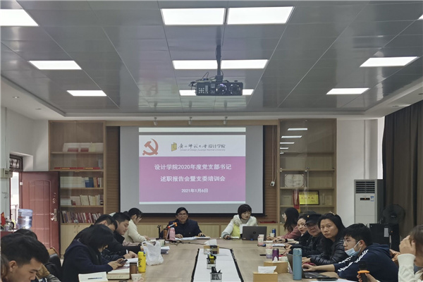 2021年1月6日下午,设计学院党委在雁山校区纯道楼二楼会议室召开党支部书记述职报告会暨支委培训会。学院党委负责人、党委相关负责人、各党支部书记、各支部支委以及组织员参加会议,学院党委负责人主持会议。