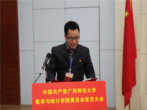 大会审议了《中共广西师范大学数学与统计学院委员会工作报告》、《中共广西师范大学数学与统计学院纪律检查委员会工作报告》和《数学与统计学院党委2017—2020年党费收缴、使用和管理情况的报告》。