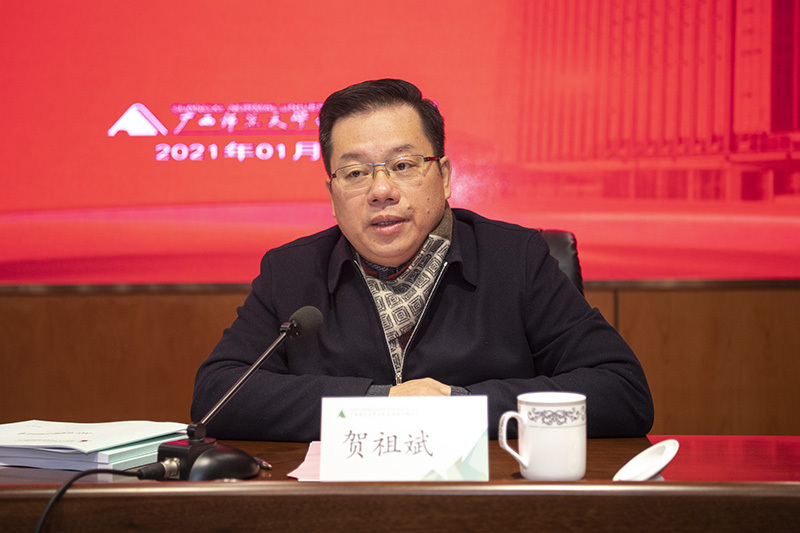 校长、校出版编审委员会主任委员贺祖斌主持会议并作相关工作部署,他指出,出版社集团要认真贯彻落实校党委要求,在新的一年,要继续坚持正确的出版导向,始终坚持出好书,出精品图书,力争创造新的业绩,实现新的发展。