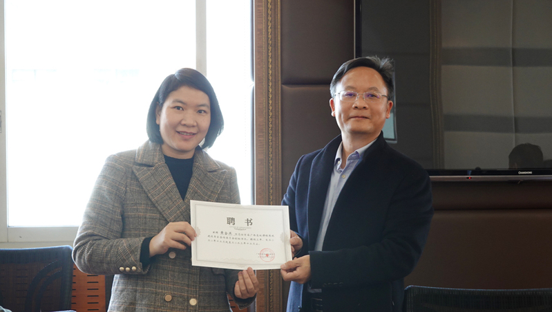 主任委员林春逸教授为副秘书长黄金燕教授颁发聘书