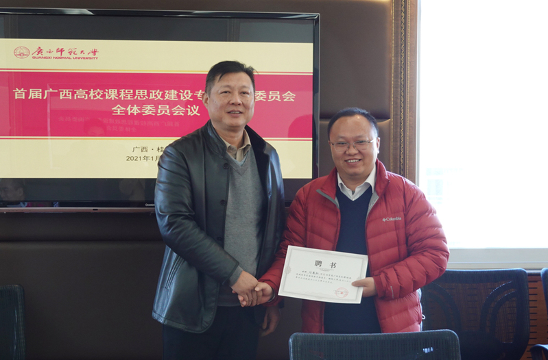为了深入学习贯彻落实习近平总书记关于教育的重要论述和全国教育大会精神,全面推进广西高校课程思政建设,1月14日下午,首届广西高校课程思政建设专家咨询委员会全体委员会议在我校育才校区田家炳教育书院501会议室召开。广西高校课程思政建设专家咨询委员会主任委员、我校副校长林春逸教授出席会议并讲话。会议由副主任委员、桂林航天工业学院副校长胡泽民教授主持。