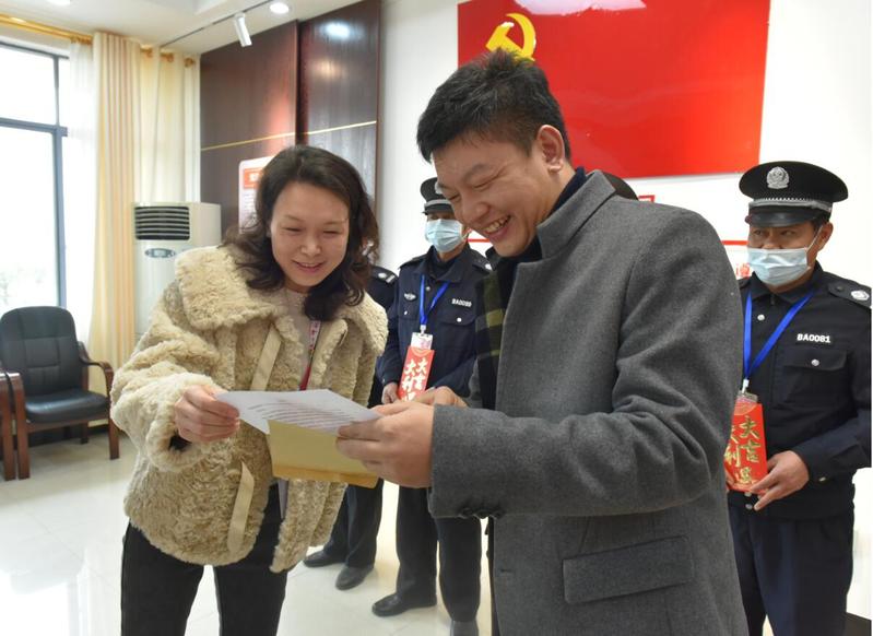 保卫处负责人接收学生写给安保队伍的《感谢信》