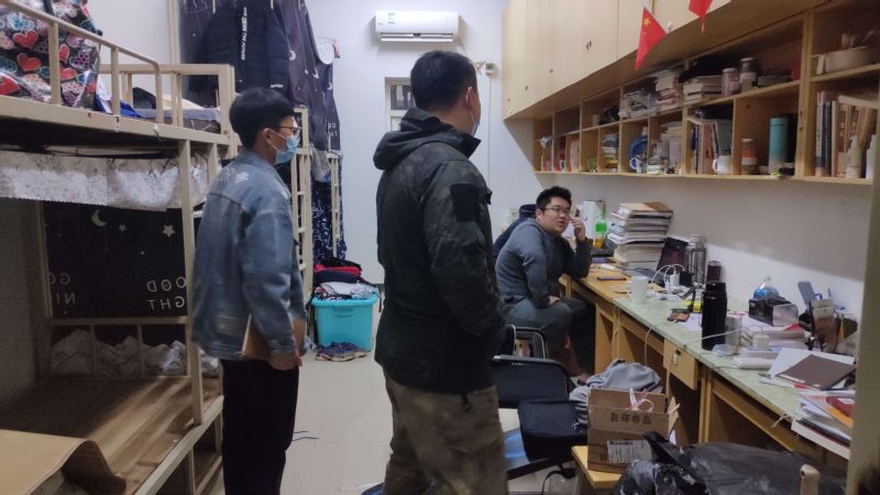 随后,巡查工作小组分组分路线对全校学生宿舍区域进行了近两个小时的实地检查。重点对离校前的安全卫生进行排查,了解学生返乡物资准备情况,并叮嘱学生归家途中注意个人防护,离宿前做好卫生大扫除,断水断电锁好门窗,确保人身及财产安全。