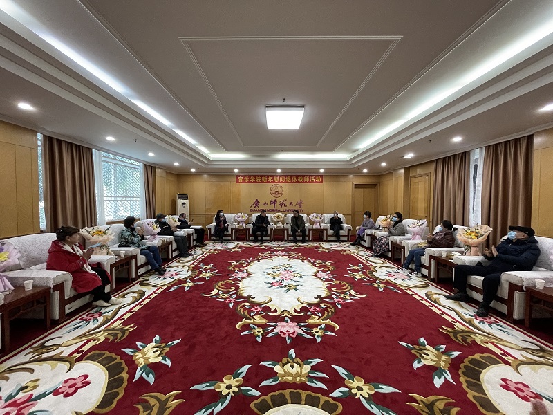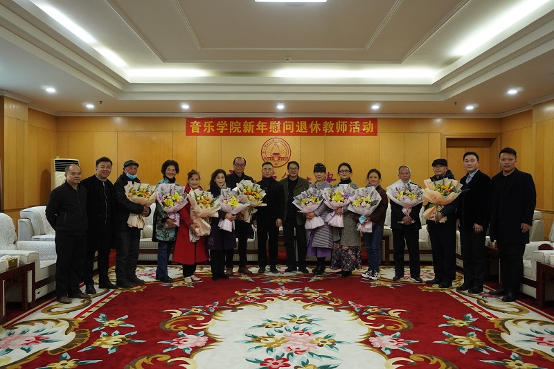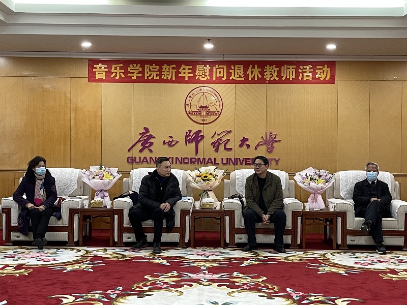 日月开新元,万象始更新。1月15日下午,音乐学院于育才校区图书馆一楼贵宾厅召开了慰问退休老教师座谈会,广西师范大学副校长、音乐学院院长蔡韧,音乐学院全体领导班子成员出席座谈会,向学院退休老教师们致以诚挚的关怀和新春的祝福。