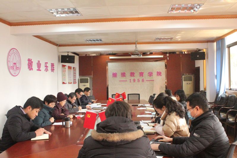 2021年1月18日上午,继续教育学院党支部召开了2020年度组织生活会和民主评议党员会议。机关党委委员、校团委副书记到会指导,学院党支部书记主持会议,支部全体党员参加会议。