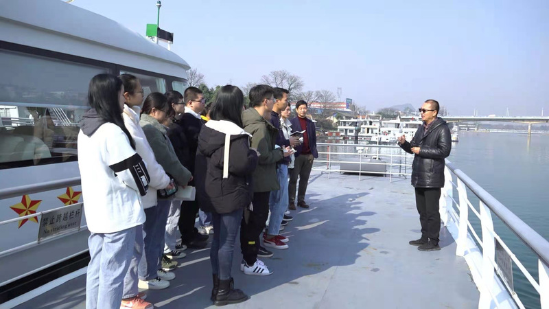 应用化学专业学生乘坐锂离子电池动力新能源船舶游览漓江