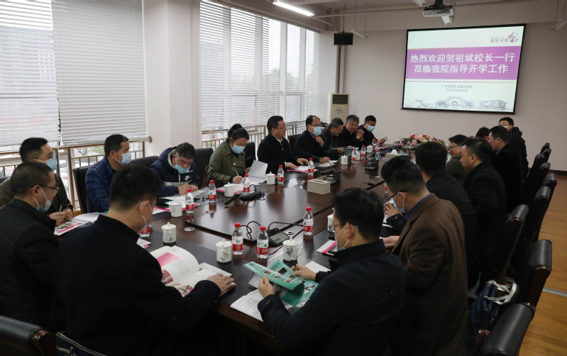 贺祖斌在听取学院工作汇报并与学院座谈时,强调要围绕学校的重点工作目标,集中力量、整合资源、开阔视野,为学校发展做出新的贡献。