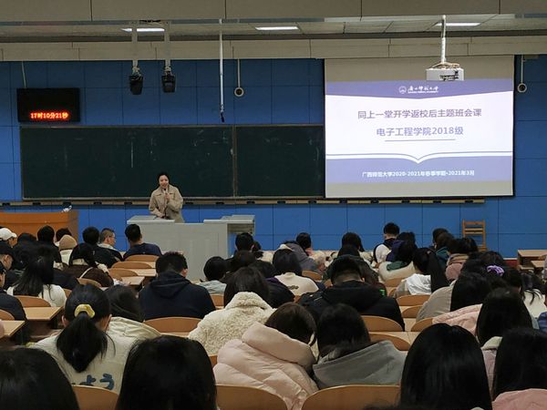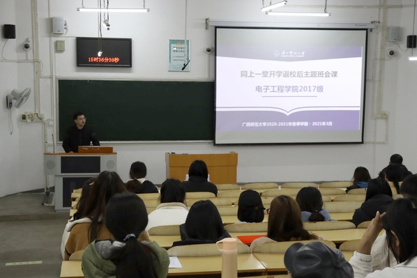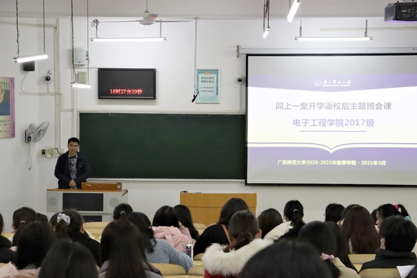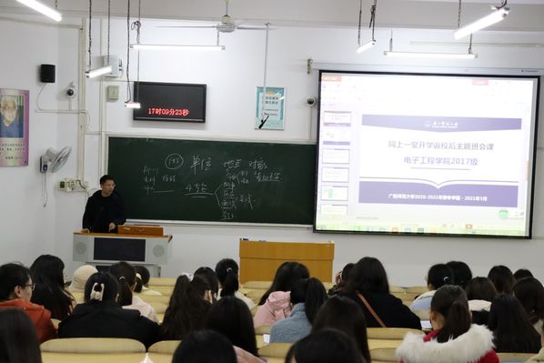 3月5日下午,电子工程学院在育才校区理科综合楼203分两场召开2017级本科生新学期返校后第一次主题班会。学院党委相关负责人、2017级本科生专兼职辅导员、班主任及252名同学参加了班会,共同开启新学期立德成才新生活。