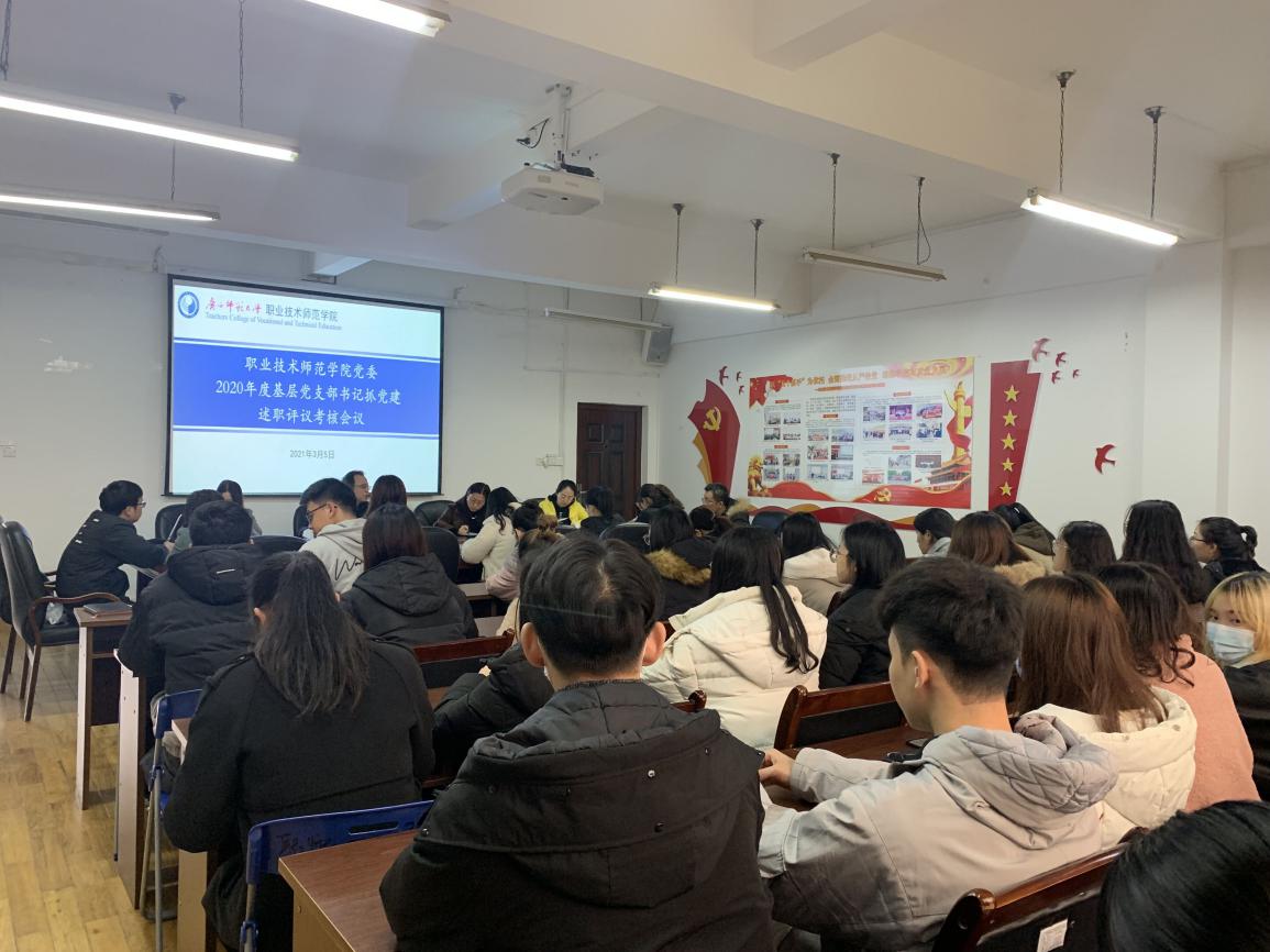 近日,职业技术师范学院党委在职师楼305会议室召开了2020年度基层党支部书记述职评议考核会议。会议由学院党委负责人主持,各支部书记及支部委员近50人参加会议。