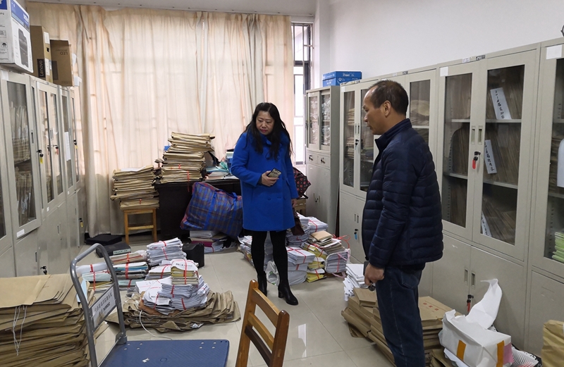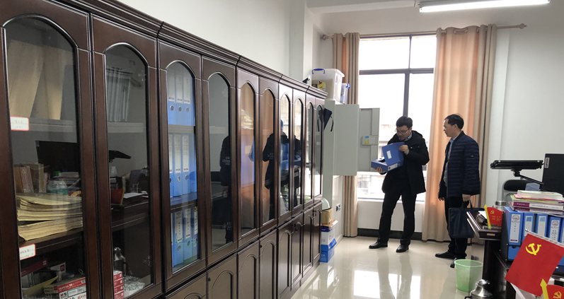 第二组检查人员到校长办公室开展档案工作检查