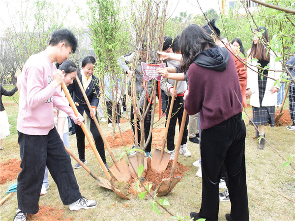 学院领导参与植树活动