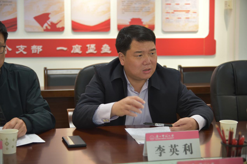 李英利总会计师对雁山分局多年来在我校安全稳定工作上的支持表示感谢,对雁山公安分局提出的建议表示赞同。要求学校相关部门和各学院(部)要以“党建引领,金盾护校”为契机,创新教育模式,寻找合理对策,切实从维护师生生命财产安全和校园安全稳定的高度做好电信诈骗防范教育,坚决管好校园一方净土,共建平安雁山、平安师大。