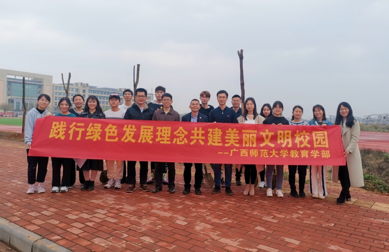 为进一步贯彻落实习近平生态文明思想,扩大学校绿化面积,建设生态文明绿色校园,增强师生环保意识,3月16日上午,教育学部师生代表在学部党委主要领导的带领下,在各年级辅导员的精心组织下,于雁山校区共青林、厚藩楼小田径场旁开展“践行绿色发展理念,共建美丽文明校园”植树活动。