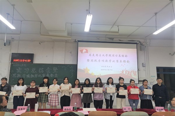 3月17日晚,马克思主义学院于文四302教室举办实习总结会暨思政专项教学比赛表彰会。学院领导、实习指导老师、各年级辅导员、2017级本科生及学科思政专业硕士研究生共同参加此次会议。
