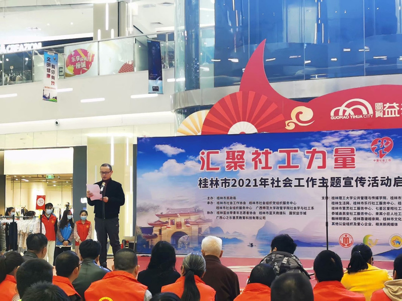 3月16日上午,2018级社会工作团支部组织24名团员青年作为志愿者参与桂林市举办的“2021年社会工作主题宣传活动启动仪式暨学雷锋活动月公益集市”活动。启动仪式上,桂林市民政局相关负责人表示政府今后将继续加大对社会工作的支持力度,引导社会工作服务机构和社会工作者,紧密围绕百姓需求,做好服务内容设计,吸引更多公益慈善资源,为推进乡村治理体系、治理能力现代化和推动乡村全面振兴贡献社工力量。政管学院社会学与社会工作系三位专任教师作为嘉宾在活动中分别做主题发言,他们指出,社会工作既是一种专业化的助人活动,也是一种职业、一门学科、一种重要的制度安排。实施乡村振兴战略是党和国家的重大决策部署,社会工作应当结合社会发展形势所需,找准定位开展服务工作,在服务中坚持职业化、专业化、本土化的发展路径。同时要加强社会工作专业人才培育工作,推动社会工作在助力乡村振兴,服务困难人群、协同社会治理等方面积极担当、主动作为。这次活动既让支部成员进一步了解社会工作的具体实践动态,又有利于加深自我专业认知。