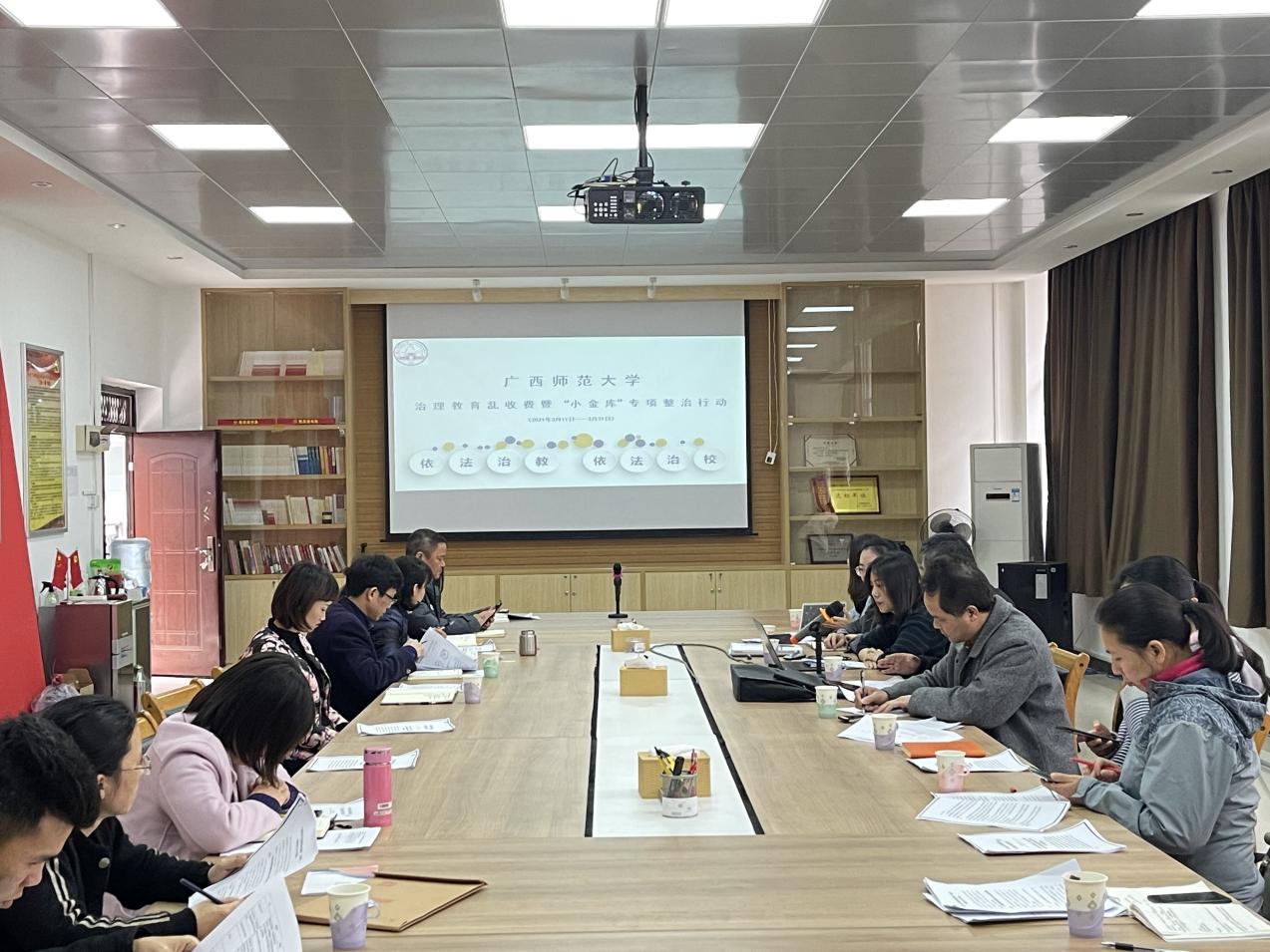 为深入贯彻落实中央和自治区治理教育乱收费文件精神,根据学校《关于印发广西师范大学治理教育乱收费暨“小金库”专项整治行动工作方案的通知》要求,3月17日至25日,学校治理教育乱收费专项整治工作检查小组开展了专项检查工作。