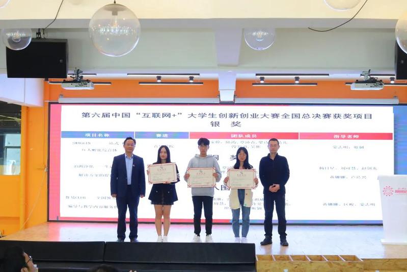 林春逸副校长与双创教育专家共同为第六届“互联网+”大赛获奖项目代表颁奖。