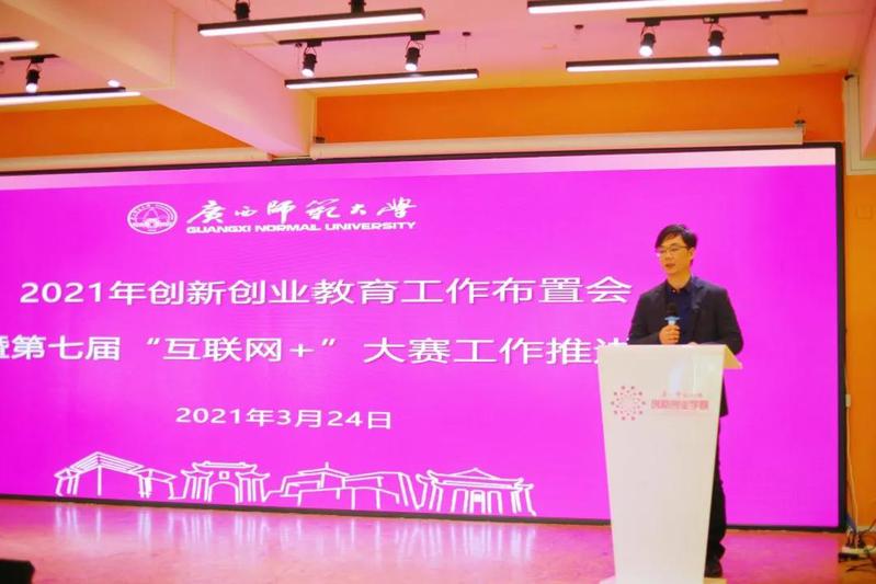 3月24日,我校2021年创新创业教育工作布置会暨第七届“互联网+”大赛工作推进会在大学生创业园路演厅召开。校党委常委、副校长林春逸,学工部(处)、校团委、教务处、科技处、社科处/广西文科中心、研工部/研究生院、校友办/基金会管理办相关负责人,各学院(部)分管创新创业教育工作负责人及第六届“互联网+”大赛获奖项目代表参加了会议。会议由创新创业学院负责人主持。