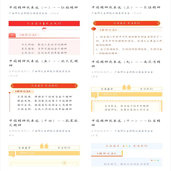 为深入学习贯彻习近平总书记在党史学习教育动员大会上的重要讲话精神,弘扬以爱国主义为核心的民族精神教育和以改革创新为核心的时代精神,生命科学学院党委组织全院党员、团员开展“中国精神我来说”主题党日活动,现已形成系列推送18期。