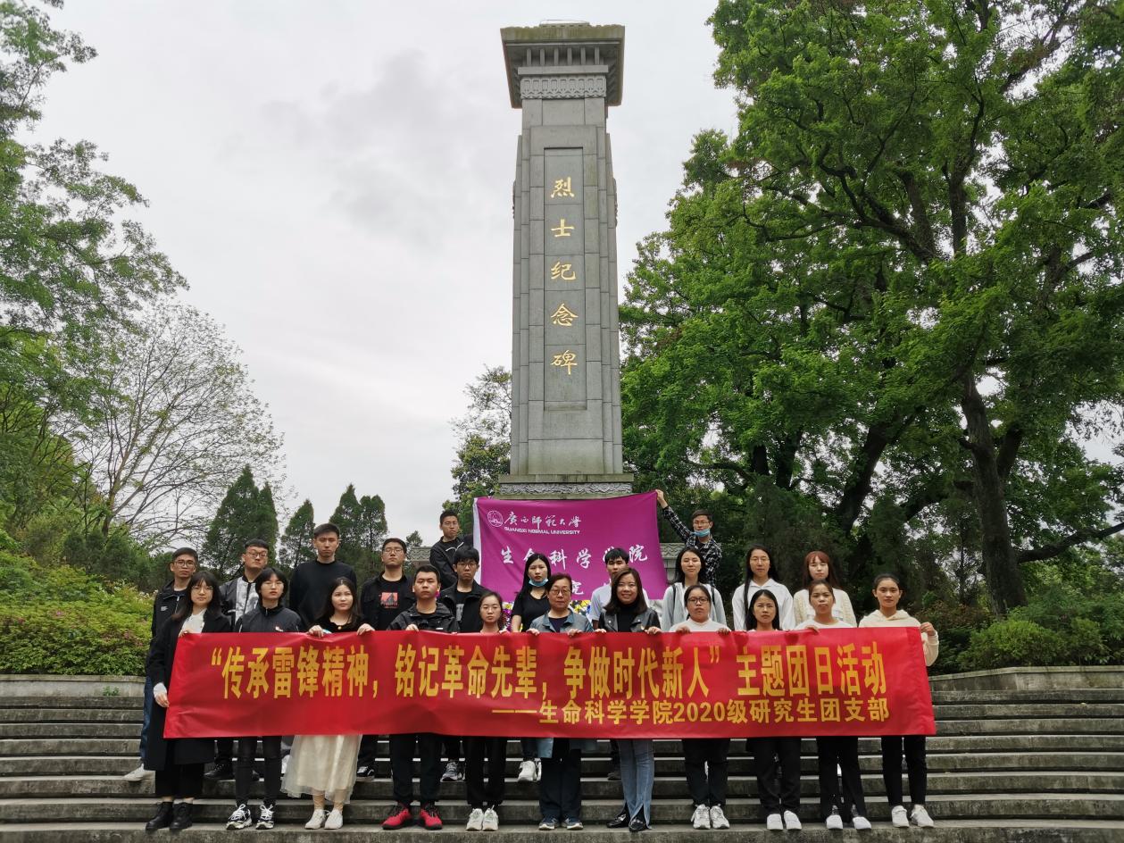为缅怀革命烈士,弘扬爱国主义精神,深入开展党史学习教育,在清明节来临之际,2021年4月3日,生命科学学院党委组织2020级研究生团支部前往七星景区烈士纪念碑开展“传承雷锋精神,铭记革命先辈,争做时代新人”主题团日活动,学院研究生导师代表、研究生辅导员及研究生党团员代表参加此次活动。