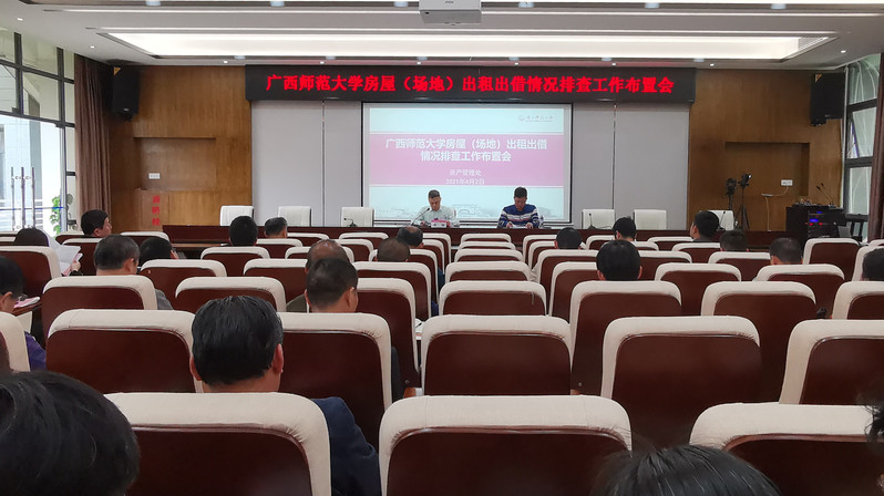 4月2日下午,我校召开房屋(场地)出租出借情况排查工作布置会,宣传学习《广西师范大学房屋(场地)出租出借管理暂行办法》,就开展全校的房屋(场地)出租出借情况排查工作(以下简称“排查工作”)的工作目标、任务和纪律要求进行了全面布置动员。蔡韧副校长出席会议并讲话。全校各学院(部)、各单位负责人参加会议。