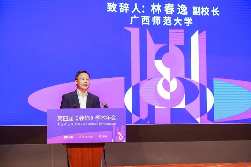 广西师范大学副校长林春逸在会上致辞,他介绍了广西师范大学的创办历史以及设计学院的办学情况。林春逸指出,本次学术年会不仅是一次沟通与视域融合的机会,更是学校以学科建设和专业发展为依托与高水平学术平台交流的重要实践,广西师范大学愿与各位专家学者共同推动设计学科的发展,全面提升设计服务社会的能力。