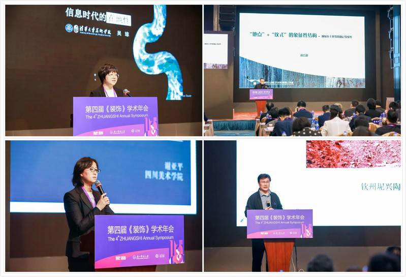 年会开幕式结束,召开了学术论坛。论坛上,清华大学美术学院长聘教授吴琼围绕《信息时代背景下的“在地”性》开展专题讲座,探讨了在信息时代背景下如何进行“在地”“入场”的设计,如何整合可视的与可感知的设计提供新的体验。西线工作室主持建筑师魏浩波带来题为《“地点”+“仪式”的象征性结构——映射乡土世界的助记符系统》的报告,共同探索独特的“共同体公共生活模型。四川美术学院艺术教育学院院长谢亚平以《被扩散的在地性:乡村手工艺村落研究中的困境与反思》为题,将四川夹江传统手工造纸村落——马村为研究对象,反思在全球化在地化背后在地性研究中的困境,以及工艺变化背后乡村可持续发展的痛点和机遇。广西师范大学设计学院宁绍强做《国家地理标志保护产品坭兴陶创新发展研究》报告,提出基于“国家地理标志保护产品”的前提,确立坭兴陶发展的创新理念、方法、实践路径,提出和建立坭兴陶特色文化产业创新发展的思路及创新路径,探讨坭兴陶地域特色文化产业创新发展模式。