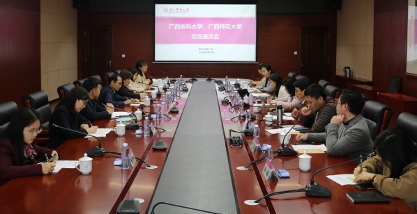 4月19日,广西医科大学学工同仁一行8人到我校开展学生工作调研交流,座谈会在雁山校区图书馆205会议室举行。我校学生工作部(处)相关科室负责人,教育学部、生命科学学院、体育与健康学院、文学院/新闻与传播学院等相关负责人参加交流座谈。会议由我校学生工作部(处)相关负责人主持。