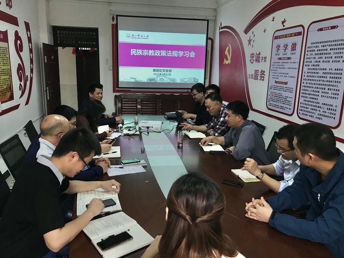 4月22日上午,基建处党支部召开支部党员大会,会议集中学习了马克思主义宗教观和党的宗教政策,基建处全体党员参加了专题学习。