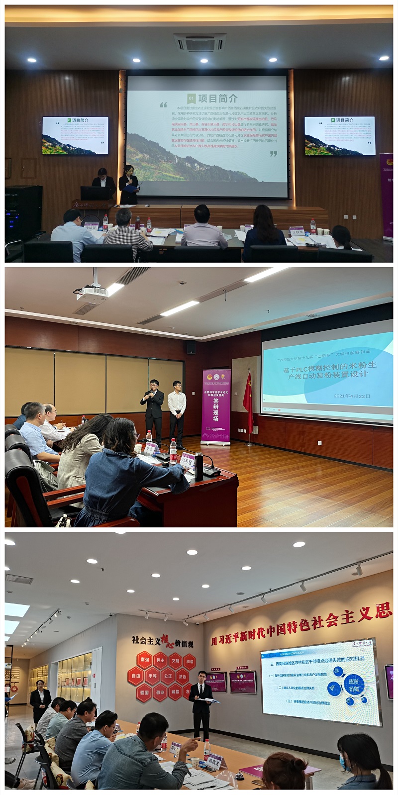 4月23日上午,我校第十九届“创新杯”大学生课外学术科技作品竞赛展评会在雁山校区成功举办,校党委副书记旷永青出席并致辞。学工部(处)、校团委、教务处、科技处、社科处、创新创业学院等相关职能部门负责人以及专家评委、各学院(部)党委副书记、团委书记、参赛作品指导老师及队员、观摩团学生300多人参加了本次展评会。