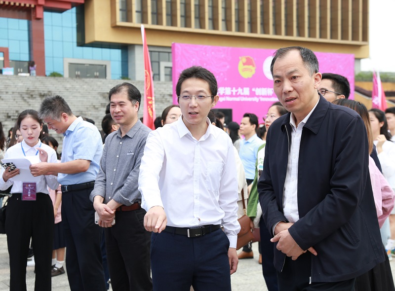 会上,学生代表经济管理学院2018级金融学专业陈渊莉同学、指导老师代表环境与资源学院宿程远老师分别交流了参赛经历和指导经验,与会领导嘉宾来到作品展区参展并与学生亲切交流。