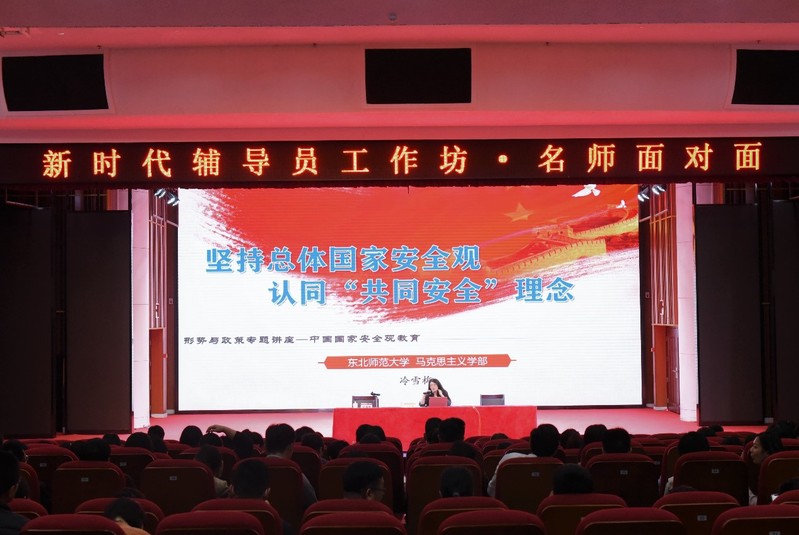 为深入学习习近平总书记重要讲话精神,全面贯彻总体国家安全观,引导师生自觉树立国家安全意识,促进“形势与政策”课教师教学能力和课程质量不断提升,4月28日下午,我校在雁山校区音乐学院三楼综合厅组织开展了新时代辅导员工作坊(2021年第3期)暨“名师面对面”活动。本次工作坊特邀全国思政课教学能手获得者、东北师范大学马克思主义学部“形势与政策”教育系主任冷雪梅教授,就“坚持总体国家安全观,认同“共同安全”理念”主题为全体辅导员上“形势与政策”示范课。校党委副书记旷永青出席活动并讲话。计算机科学与工程学院/软件学院党委副书记贾越峰主持活动。学工部(处)负责人、“形势与政策”教研室全体教师、全体专职辅导员参加了此次活动。