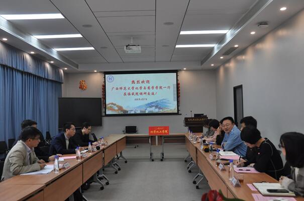 为学习厦门大学大学化学化工学院化学国家级实验教学示范中心的建设成功的经验,进一步提高我校化学实验教学水平,完善实验室管理制度,学习厦门大学化学学科拔尖人才培养的先进经验。2021年4月9日,广西师范大学化学与药学学院副院长一行4人赴厦门大学化学与化工学院调研学习。厦门大学化学化工学院的吕鑫副院长、任艳平主任、曹晓宇主任对我校调研组表示热烈欢迎。