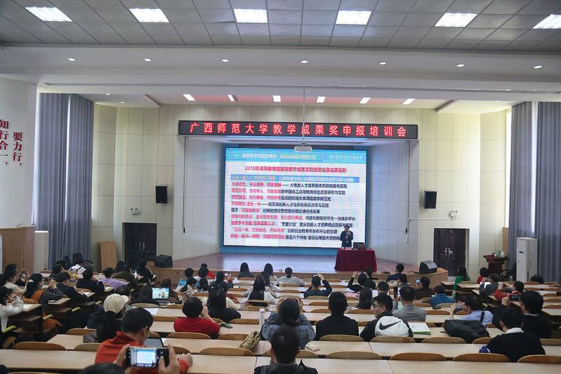 为做好2021年广西高等教育自治区级教学成果等次评定工作,进一步深化我校教育教学改革,推动学校教育教学创新发展,4月29日,我校邀请原桂林电子科技大学教务处处长郭庆教授,为我校教师作了一场关于高等教育教学成果奖申报的培训。培训会在育才校区大学生学术报告厅召开,我校教务处负责人、各学院(部)教学副院长及有意申报教学成果奖的教师共100余人参加了培训。