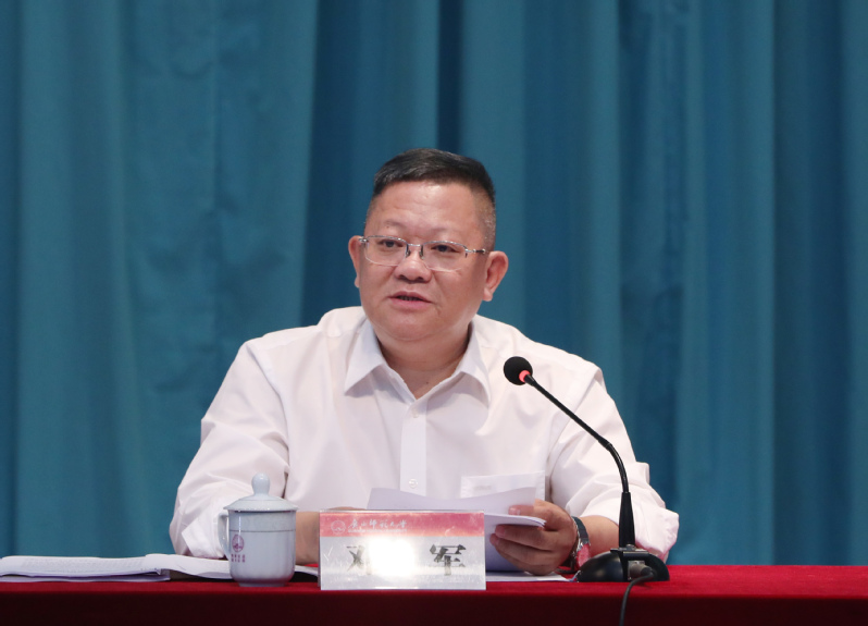 会上,邓军代表学校领导班子作述职报告和年度选人用人工作报告。他指出,2020年,在自治区党委、自治区政府和自治区党委教育工委、教育厅的正确领导下,学校领导班子在习近平新时代中国特色社会主义思想引领下,团结带领广大党员干部和师生员工认真学习贯彻党的十九大及十九届二中、三中、四中、五中全会精神,深入学习贯彻习近平总书记关于教育的重要论述和对广西工作的重要指示批示精神,全面贯彻落实党的教育方针和党中央、自治区党委重大决策部署,始终坚持社会主义办学方向,全面加强党的领导、严格落实全面从严治党要求,全面落实立德树人根本任务,全面深化综合改革,全面推进依法治校,着力加快“双一流”建设,奋力创建全国文明校园,大力推进学校党的建设和各项事业高质量发展,统筹推进疫情防控和高水平大学建设取得重大阶段性成果。