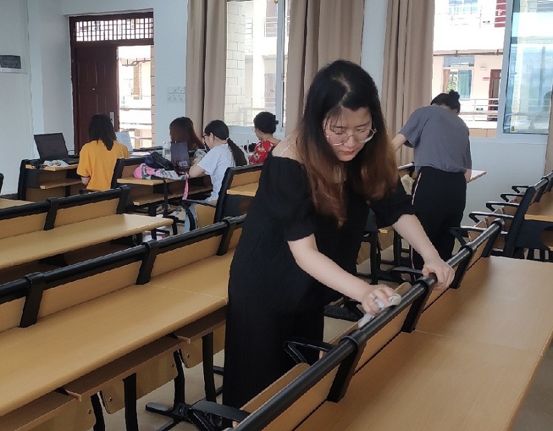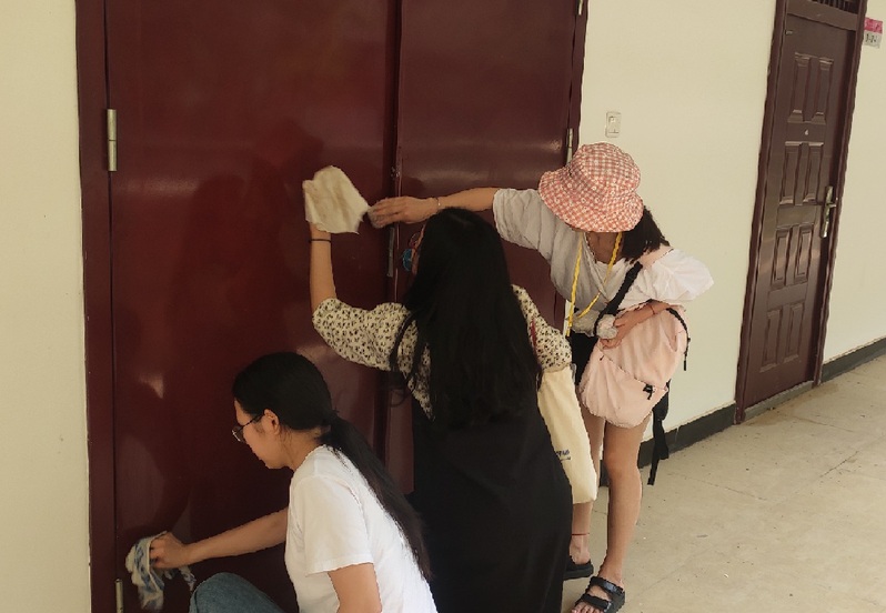 课程与教学论党、团支部成员在党支部书记的带领下,两人一组、自备抹布和桶,有序对新建理科楼的楼道进行清洁打扫。大家在活动中本着不怕脏、不怕累的奉献精神,积极主动、互相合作,干劲十足,对每一层楼的消防门都进行了认真清洁、不放过任何一个卫生死角,为教学楼营造了一个优美洁净的学习环境,得到了老师和同学们的好评。