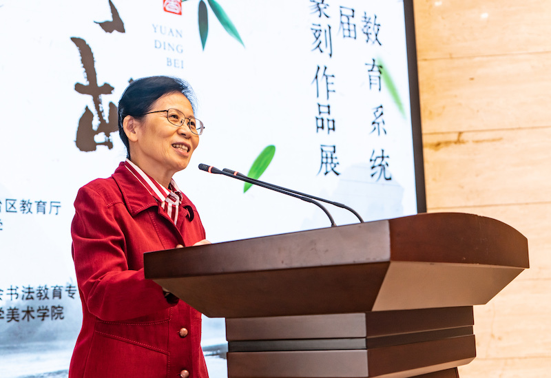 万锋锋谈到,“园丁杯”广西教育系统书法篆刻作品展览是广西教育系统学习、践行习近平总书记关于弘扬中华优秀传统文化重要论述的举措。每届“园丁杯”书法篆刻作品展都办得有声有色,使得这项活动在区内广大师生、干部、职工中得到踊跃参与,极大推动了我区书法教育的发展。