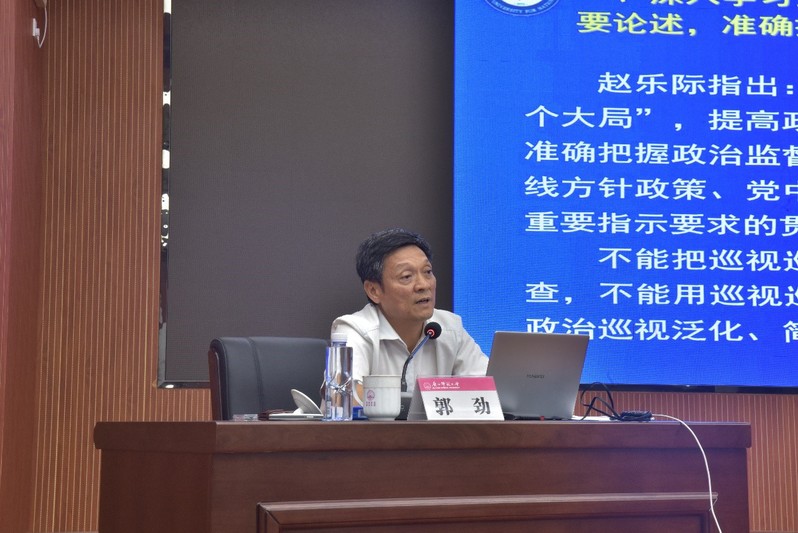 郭劲以《深刻理解把握巡视巡察工作内涵要求,推动高校巡察工作高质量发展》为题,结合自身工作经验,从准确把握巡视工作方针和政治巡视要求、坚持上下联动贯通融合完善巡视巡察工作战略格局、高校巡察中的“六个难点”和“七个下功夫”、强化巡视巡察整改落实和成果运用、加强巡视巡察工作规范化建设等五个方面做了专题辅导。他全面系统阐述了政治巡视的概念内涵、工作定位、根本任务、价值取向、监督重点和方法路径,深度剖析了高校巡察工作存在的问题,并提出改进的工作思路。讲座主题鲜明、内容丰富,深入浅出、贴合实际,具有很强的思想性、针对性和可操作性,既有理论层面的政治高度,又有典型案例的实践指导,既讲授了实用方法,又提出了具体要求。