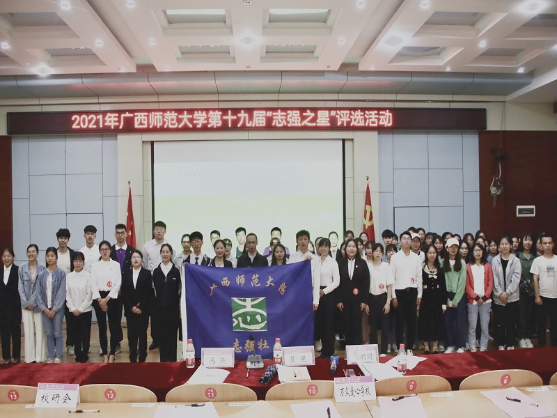 5月21日,校团委、校学生工作部(处)、校教育发展基金会主办,校大学生志强社承办的2021年广西师范大学第十九届“志强之星”评选活动在雁山校区第二文科楼大学生学术报告厅落下帷幕。全校共评选出“志强之星”10名、“志强之星”提名奖5名,“志强之星”最佳人气奖1名。