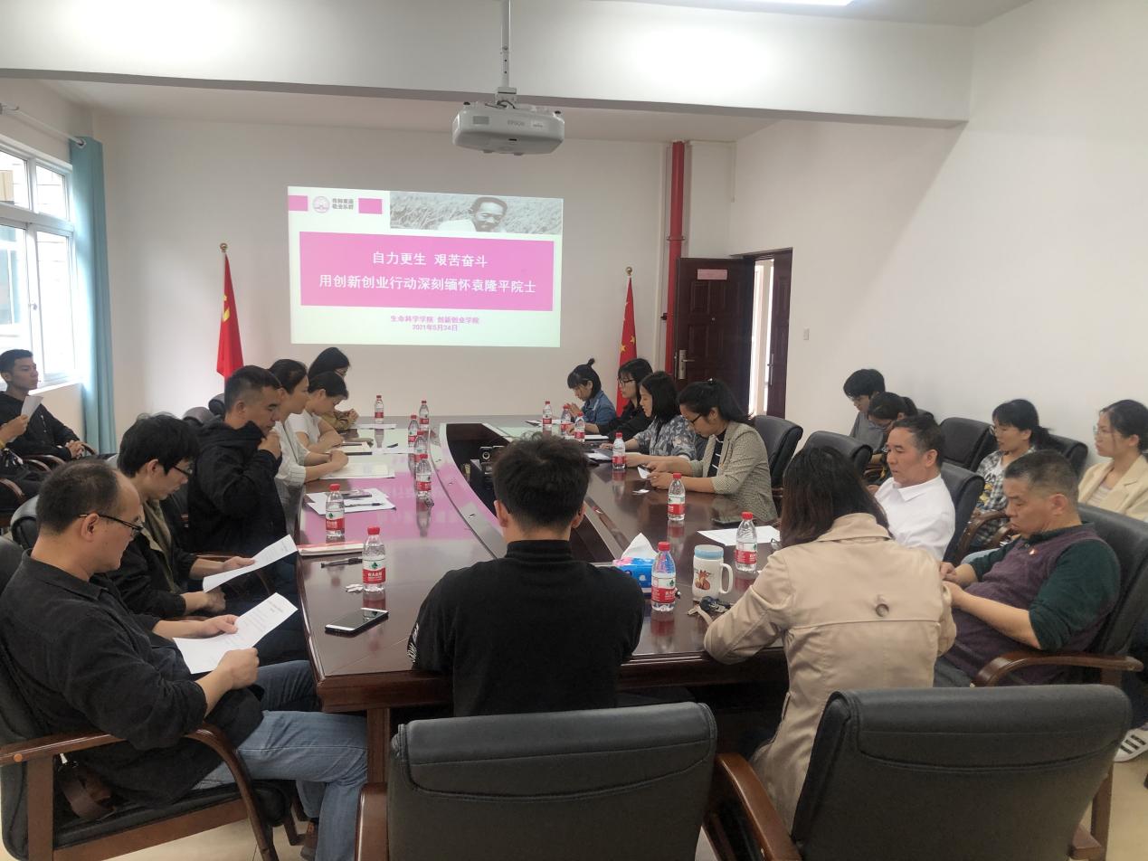 为深切缅怀袁隆平院士,5月24日下午,创新创业学院基教办党支部、生命科学学院生态学系与行政教工党支部、生物科学系本科生党支部、生物技术系与生态系本科生党支部在生命科学学院党员之家联合开展了“自力更生 艰苦奋斗——用创新创业行动深切缅怀袁隆平院士”主题党日活动。生命科学学院党委委员、纪委委员、四个师生党支部代表共计30余人参加了本次活动。