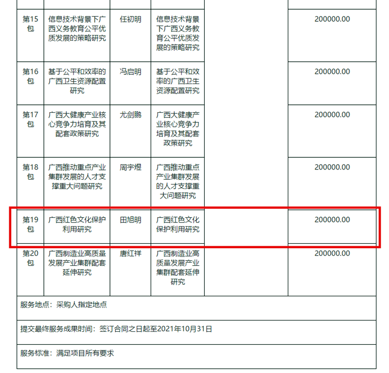 5月26日,2021年度广西特色新型智库联盟重点课题采购中标结果揭晓。由马克思主义理论与区域实践研究中心常务副主任田旭明教授牵头(课题组成员:林春逸、旷爱萍、蔡小菊、廉超)申报的重点课题《广西红色文化保护利用研究》成功中标,中标金额20万元。本次申报重点课题中标极大激发了中心研究人员服务地方经济社会高质量发展的信心和干劲,中心将坚决贯彻习近平总书记视察广西的重要讲话、重要指示精神,坚持科研工作的“四个面向”要求,立足广西、面向全国、持续发力,推出更多更高质量的智库成果,服务区域发展战略,助力全国重点马院建设。