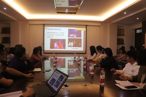 随后,与会成员移步行政南楼101会议室开展美育改革案例研讨,文院学工办主任根据7年来指导新西南剧展的实践经验和思考表示,美育改革是高校思想政治教育工作发展的前沿方向,以美育改革为切入点,通过话剧展演的形式,让学生从话剧展演中发现美、创造美和传递美。文院主要负责人以美育实践为主线发表讲话,从审美感知、审美价值与科学研究及思想政治教育的联系入手,为美育改革视角下思想政治教育工作的开展提出建议。接着,学生代表及各学院辅导员代表分别从参与美育实践及开展美育工作的经验及思考进行交流。最后,文院相关负责人对会议进行了总结,他强调,辅导员要提高政治站位,将美育改革实践融入到日常的学生工作中,在帮助学生成长成才的同时,使之达到形式美与实质美统一,促进学生的全面发展。