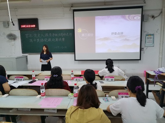 为迎接建党100周年,推动党史学习教育在广大学生中间走深走实,外国语学院深挖专业特色,以纪念建党100周年为契机,分别于5月25日和5月26日举办了以“百年党史入课堂,争做四有好老师”为主题的高中英语课程说课比赛。