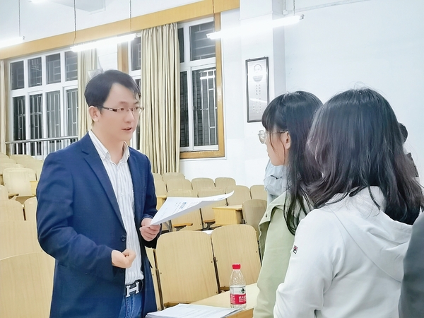 硕士生导师韦笃取模拟面试后个别指导同学