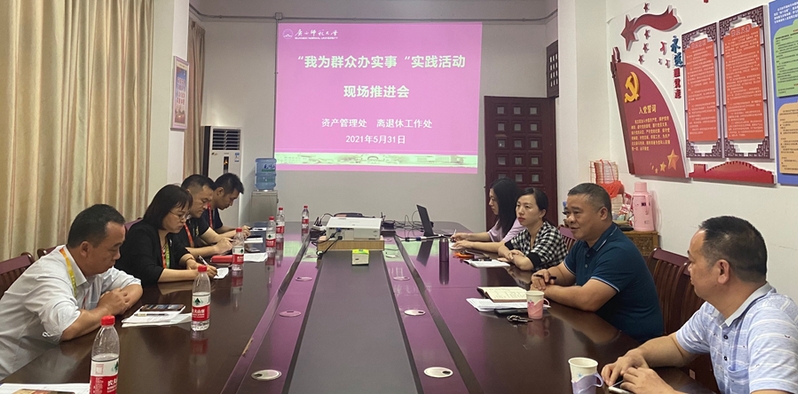 为深入贯彻落实“我为群众办实事”实践活动,着力解决广大离退休教职工“急、难、愁、盼”及关切的相关问题,5月31日,在王城离退处会议室,离退处、资产处召开了“我为群众办实事”实践活动现场推进会,资产处、离退处、王城社区办相关负责同志参加了会议。