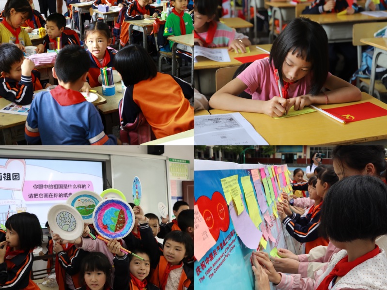 随后,全校孩子们在青年学子的鼓励下,将自己对祖国母亲的祝福及感恩之情写在便签上。“感谢祖国妈妈,我们爱您,我一定努力学习,长大了建设祖国。”“祖国妈妈,我为生长在您的怀抱而感到骄傲自豪!”“祖国妈妈,祝您更加繁荣富强,今天我努力学习,长大了把您装扮得更美丽!”字里行间流露出孩子们对伟大祖国的热爱、表达出对伟大祖国的浓浓深情和美好祝福。